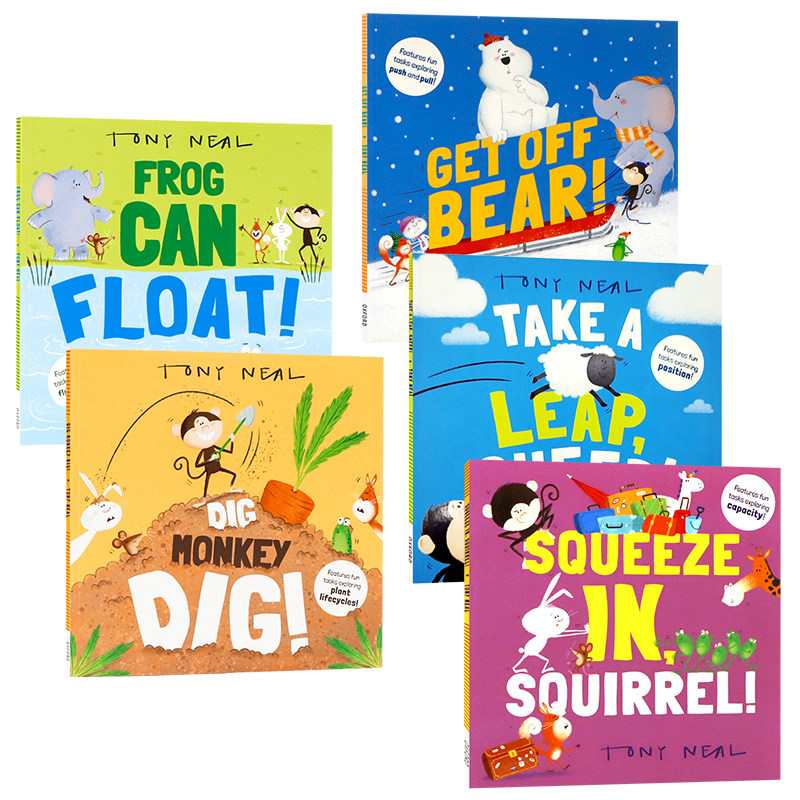 Frog 亲子互动 儿童阅读启蒙认知科普 Off 英文原版 绘本 Bear Float Can 跳一跳绵羊 启蒙图画书5册 挖呀挖呀小猴 挤进去松鼠 Get