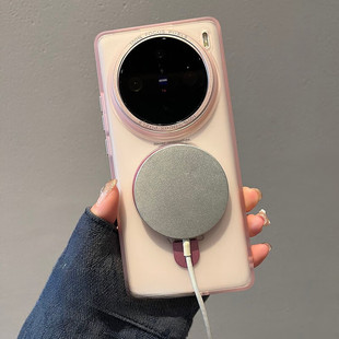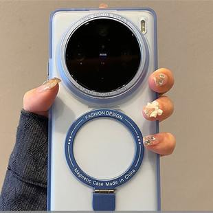 适用vivox100手机壳新款 金属支点一体磁吸支架x80磨砂透明X100pro高级感防摔5g全包保护套男女 步步高X90pro