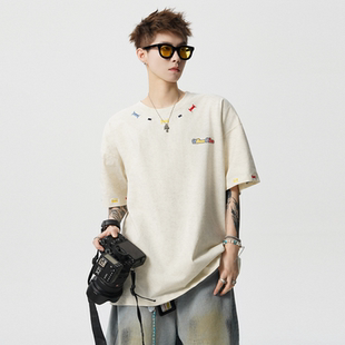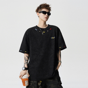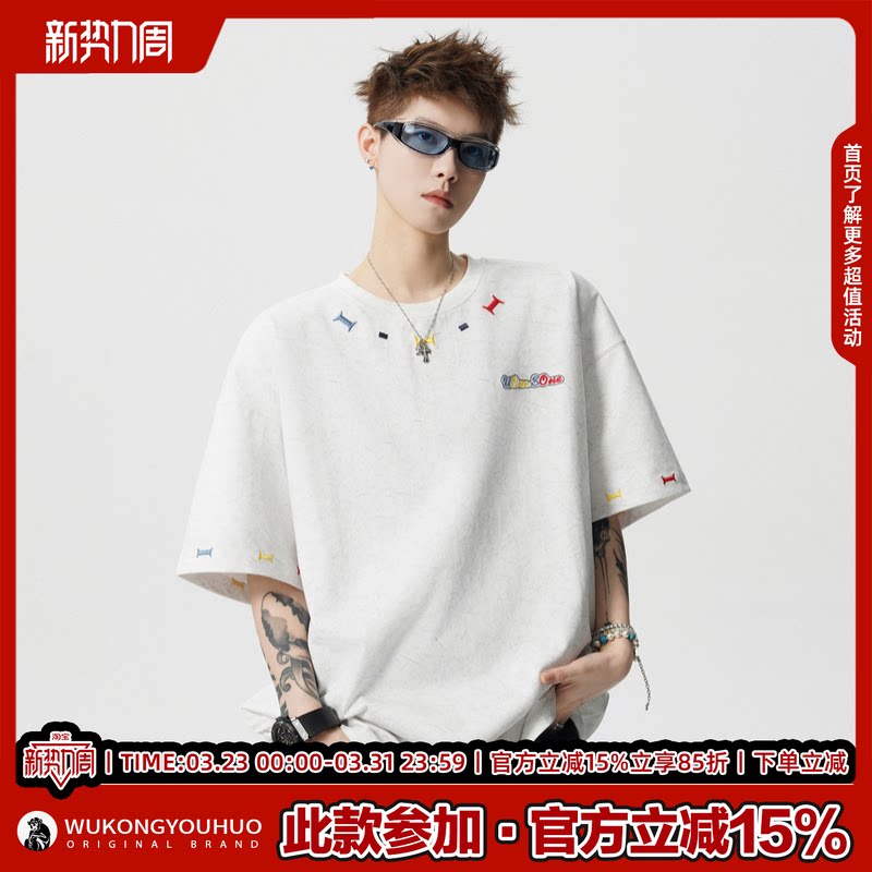 体恤 宽松情侣百搭半袖 悟空有货砂洗重磅彩绣圆领短袖 T恤男女夏季