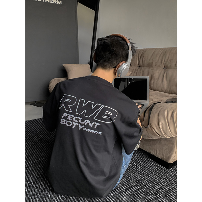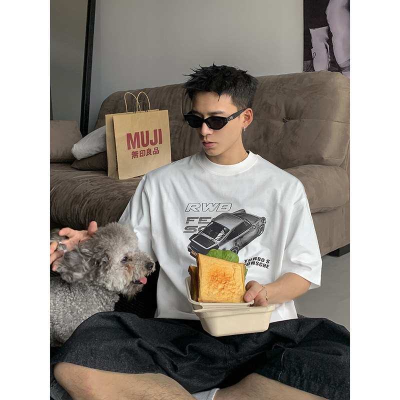 T恤男嘻哈情侣上衣 重磅复古小汽车印花百搭休闲圆领短袖 PLTH 美式