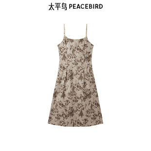 太平鸟冬季 收腰极简风印花吊带连衣裙A1FAE4344 法式