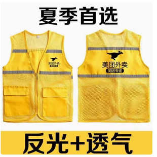 美团外卖夏季 备衣服背心定制做 马甲工作服反光防晒透气骑手衣服装