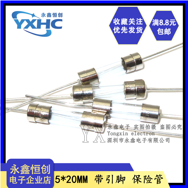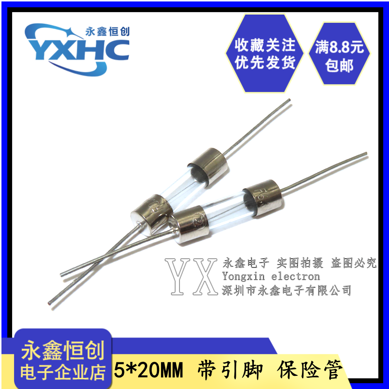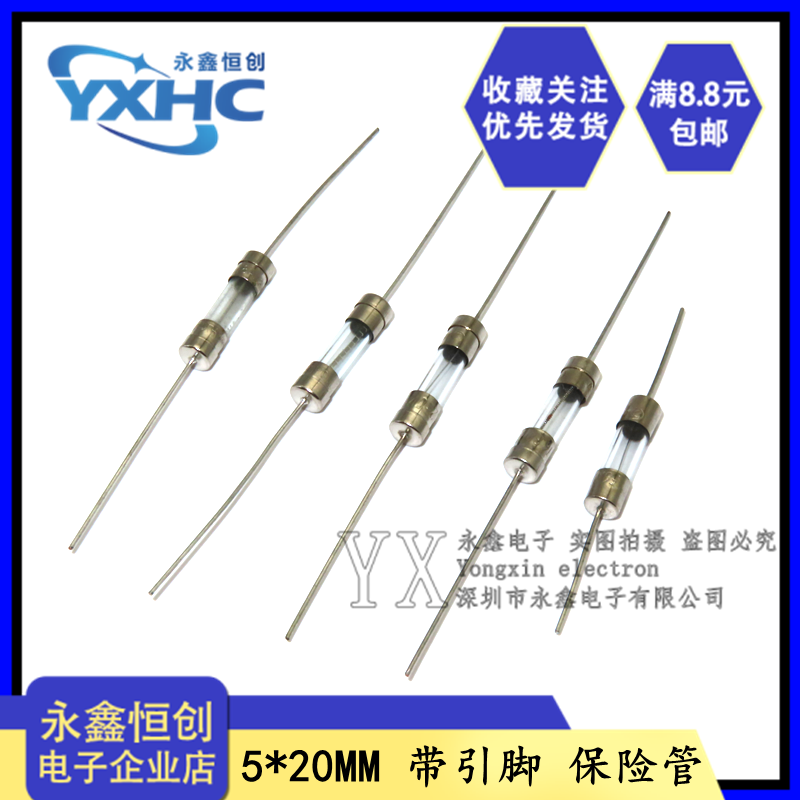 3.15A T慢断0.5A 6.3A 20MM玻璃带引脚保险管F快断