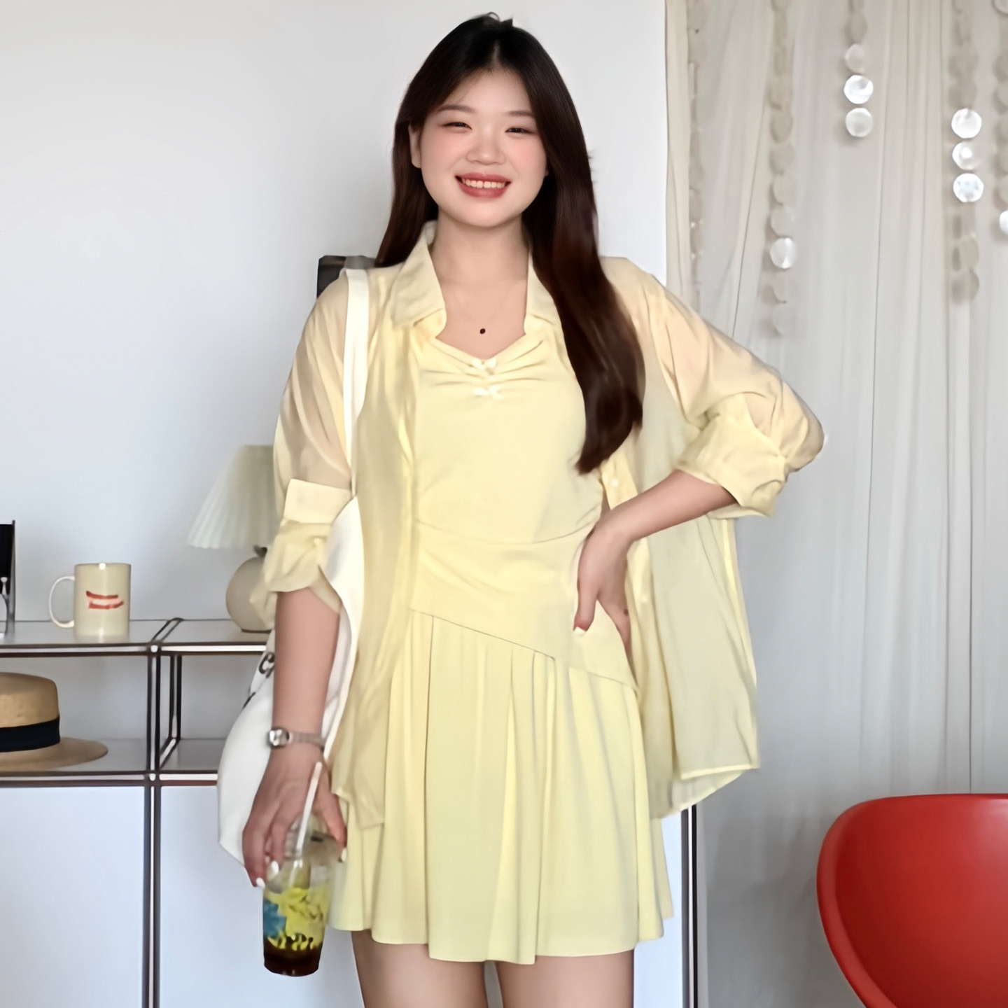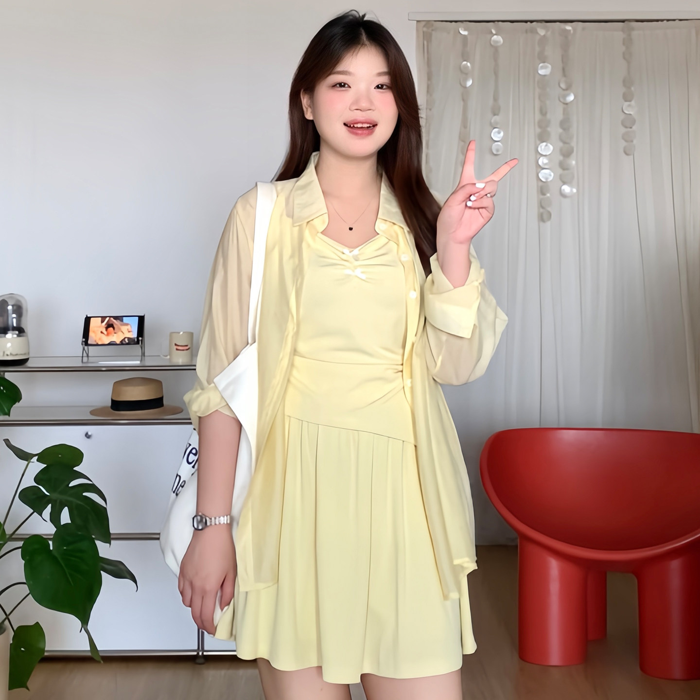 三件套装 微胖 mm夏日巨显瘦遮肚吊带防晒衣短裤 女装 1939 喵喵大码