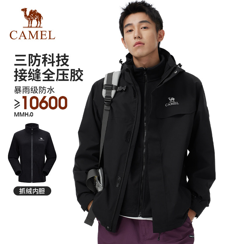 内胆 三合一登山透气夹克外套新款 骆驼男装 冲锋衣户外防风防水男款