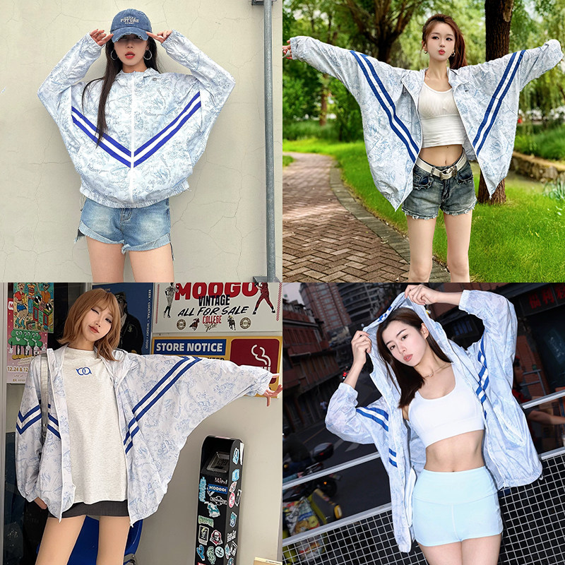 宽松轻薄户外防晒衣男女 复古印花蝙蝠袖 PLUSONEONE2026夏季 新款
