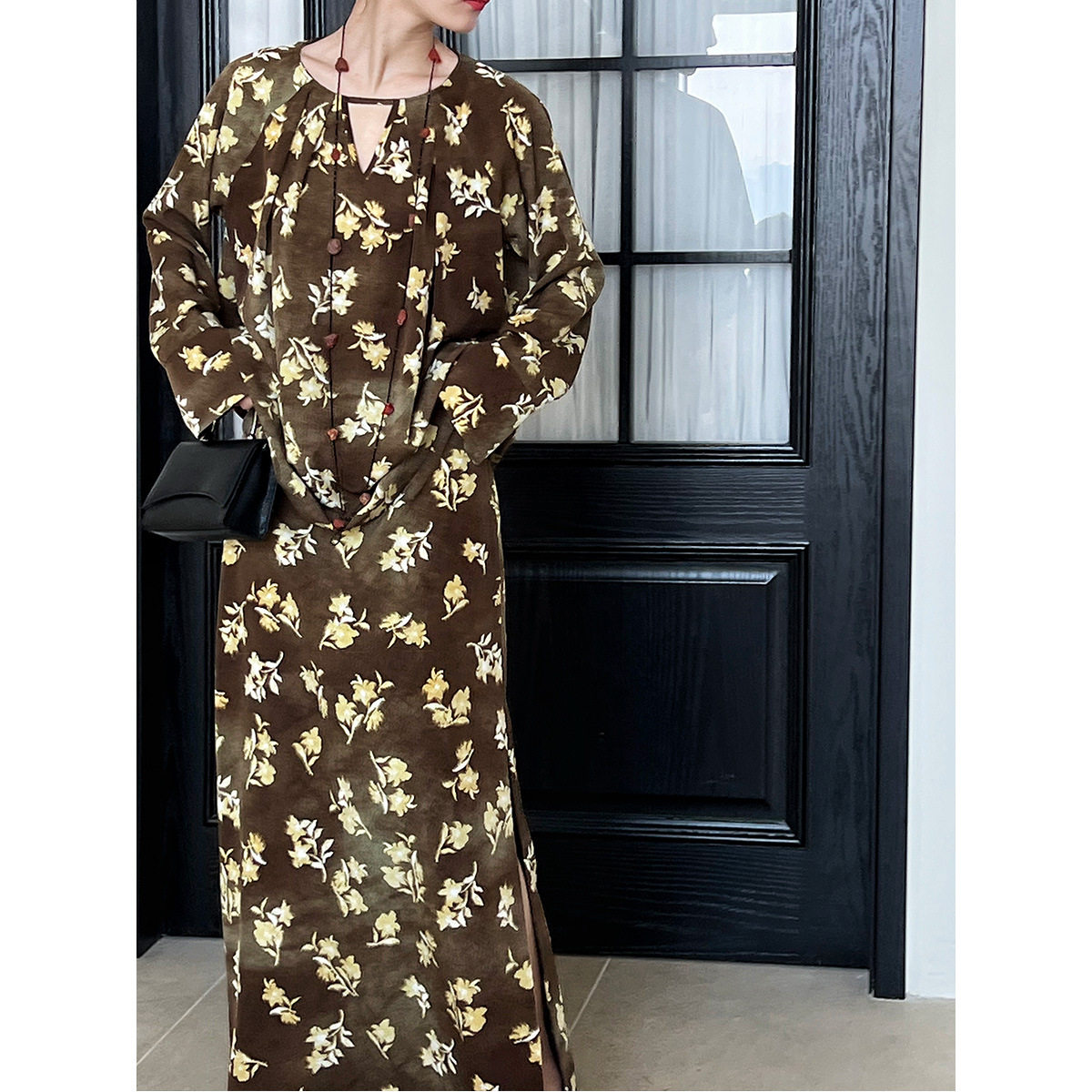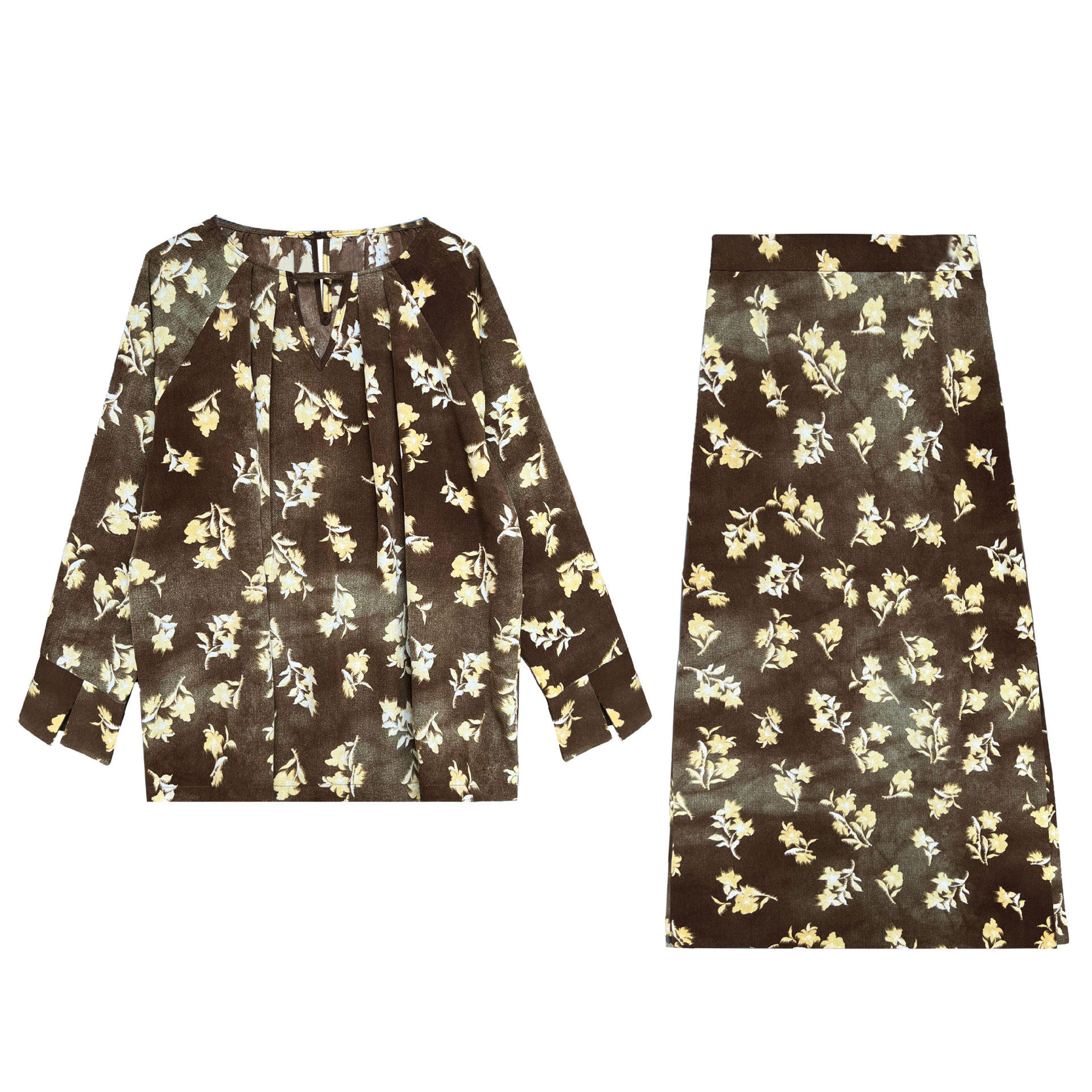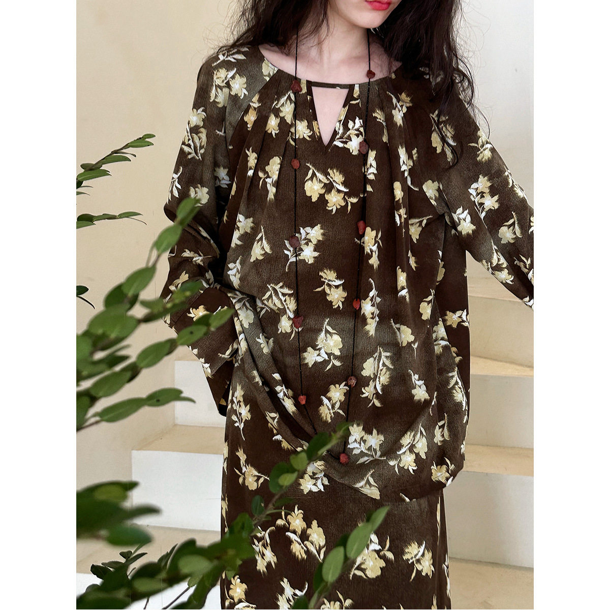 a字开叉裙两件套松弛感套装 碎花衬衫 女9630 感长袖 法式