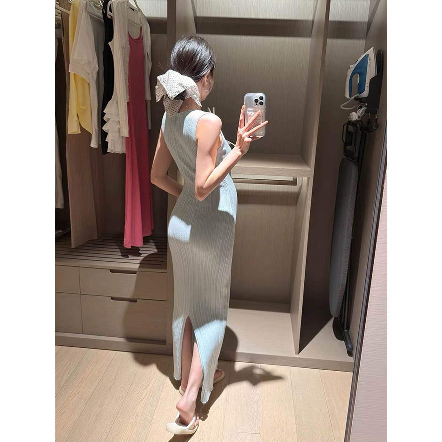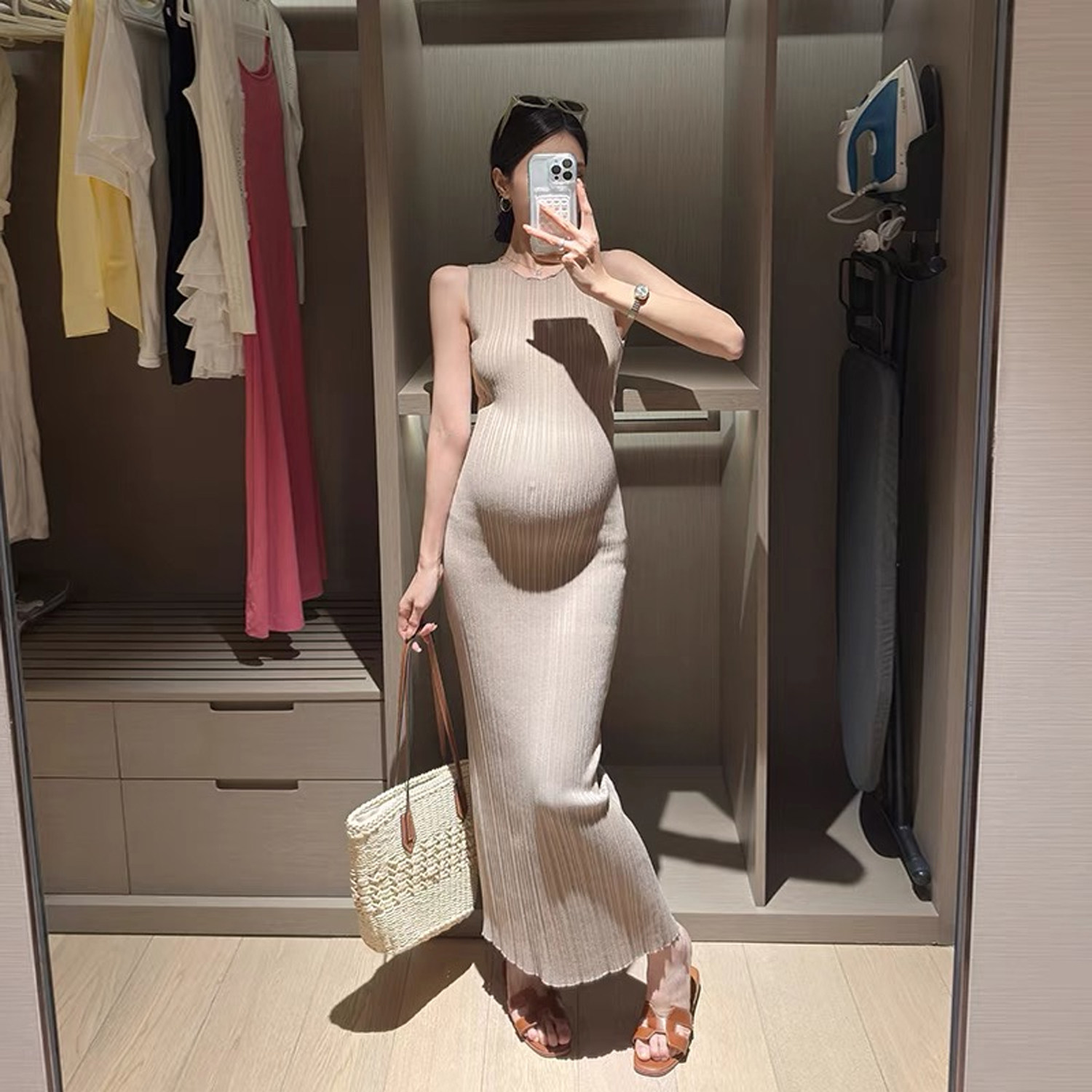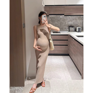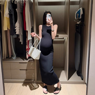 背心打底长裙子夏季 包臀针织显瘦无袖 圆领修身 孕妇连衣裙2025新款