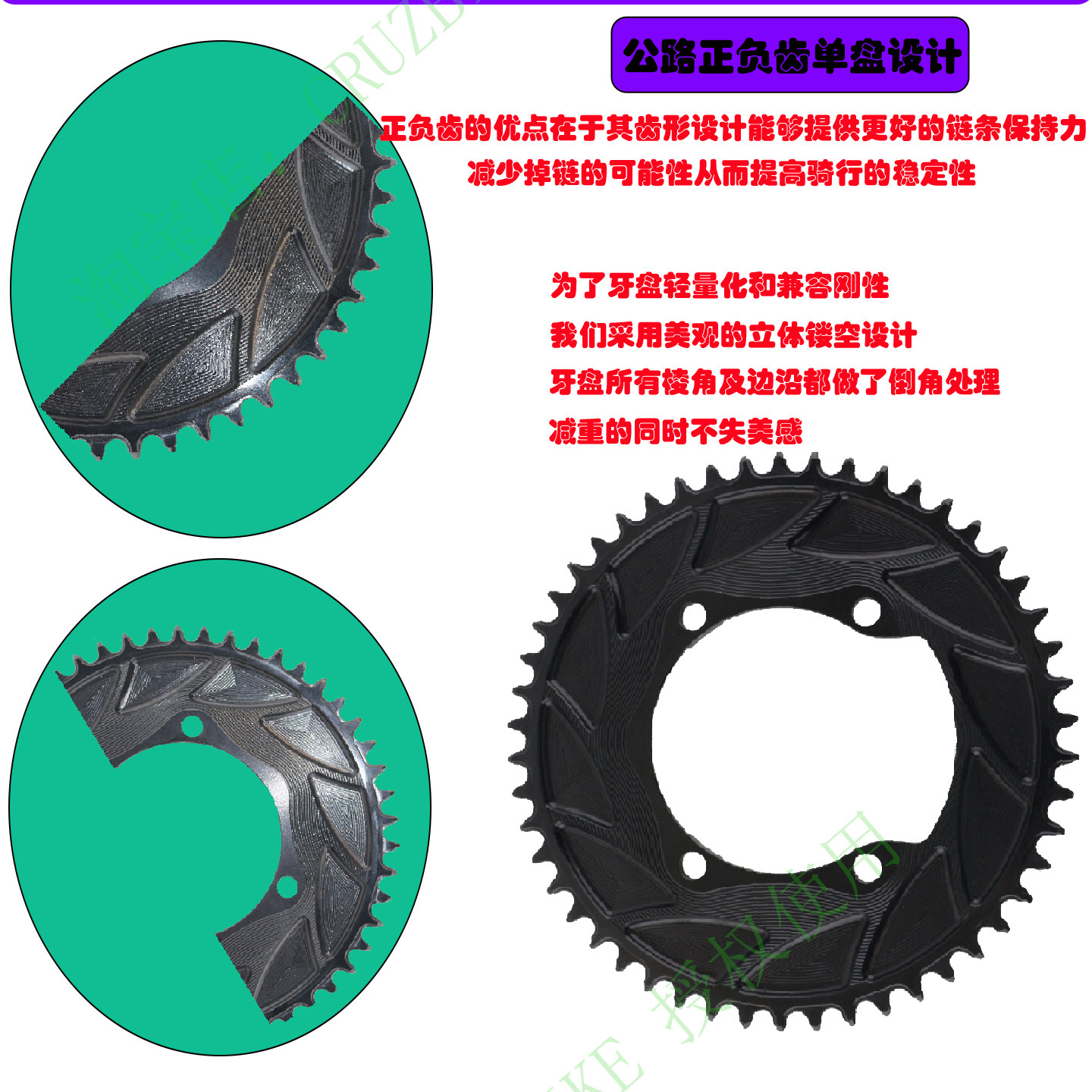 单速牙盘 36T42T50T60T正负齿盘片改装 wuzei公路车五爪110 130BCD