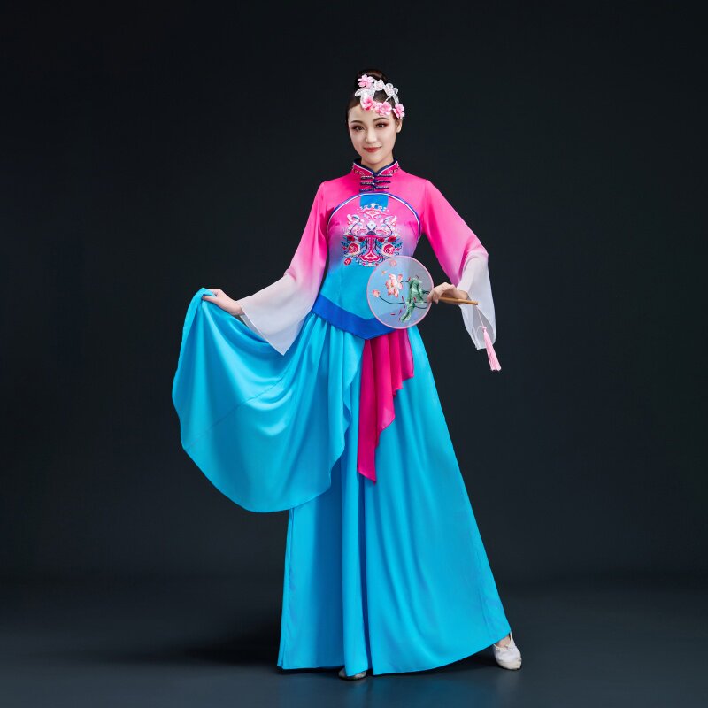 陕北榆林绥德秧歌服秧歌展演表演服打鼓演出服女飘逸扇子伞舞蹈服