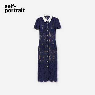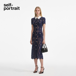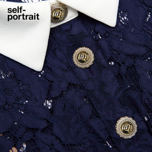 藏蓝色气质通勤翻领蕾丝连衣裙 2025早秋新款 self portrait