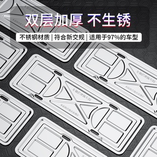 汽车牌照框不锈钢车牌架新交规车牌套加厚固定车牌边框托盘通用