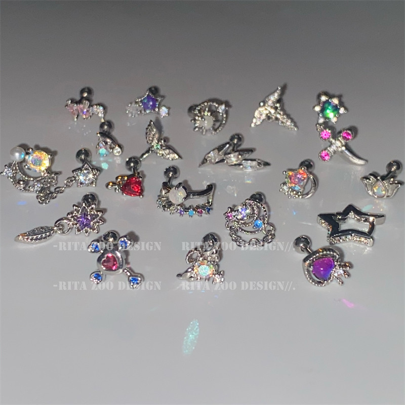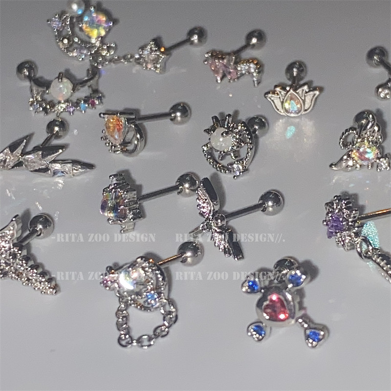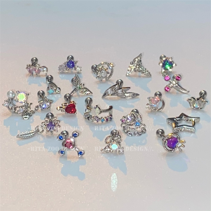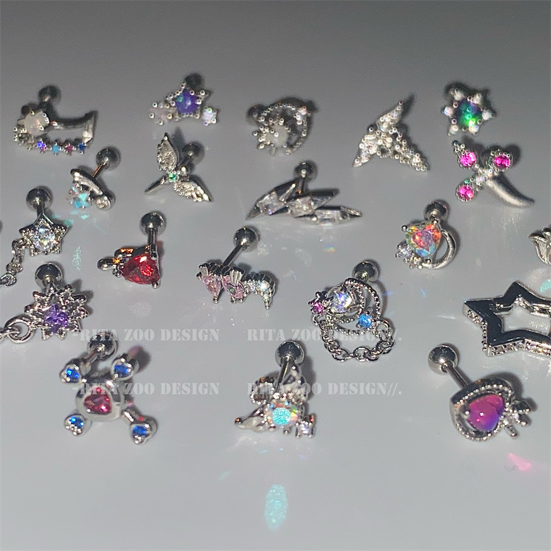 耳骨钉纯银女超闪螺丝睡觉免摘耳蜗钉2025新款 潮双面耳环耳钉耳饰