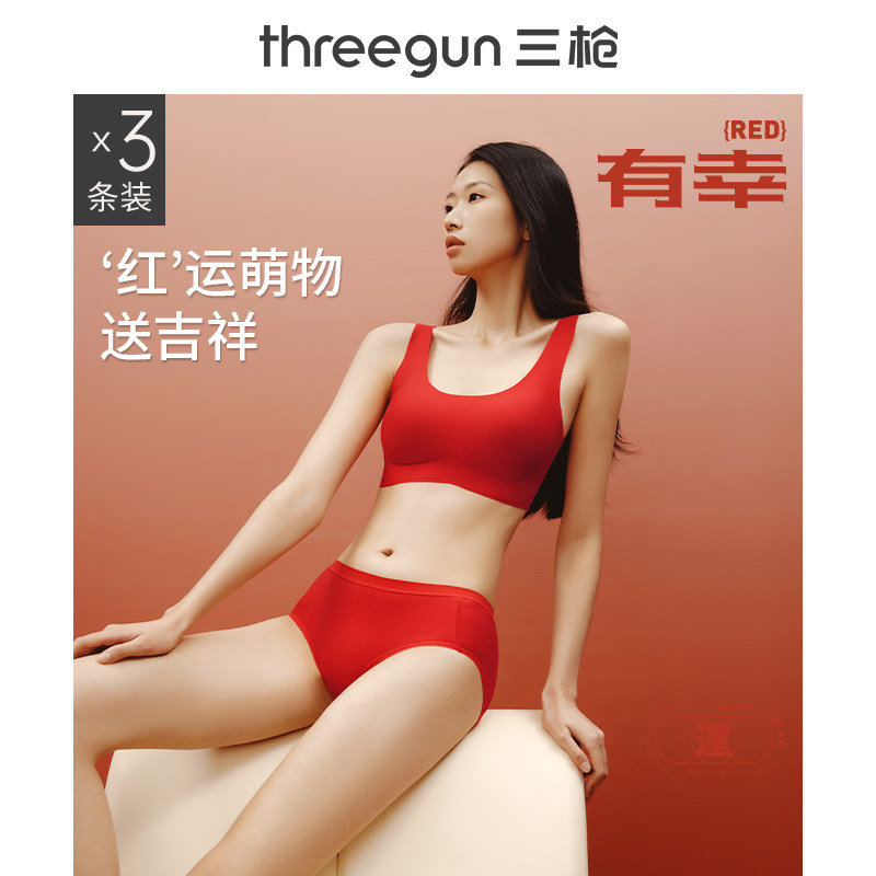 本命年红收腹全棉女士抗菌少女三角短裤 夏季 头 女中腰大码 纯棉内裤