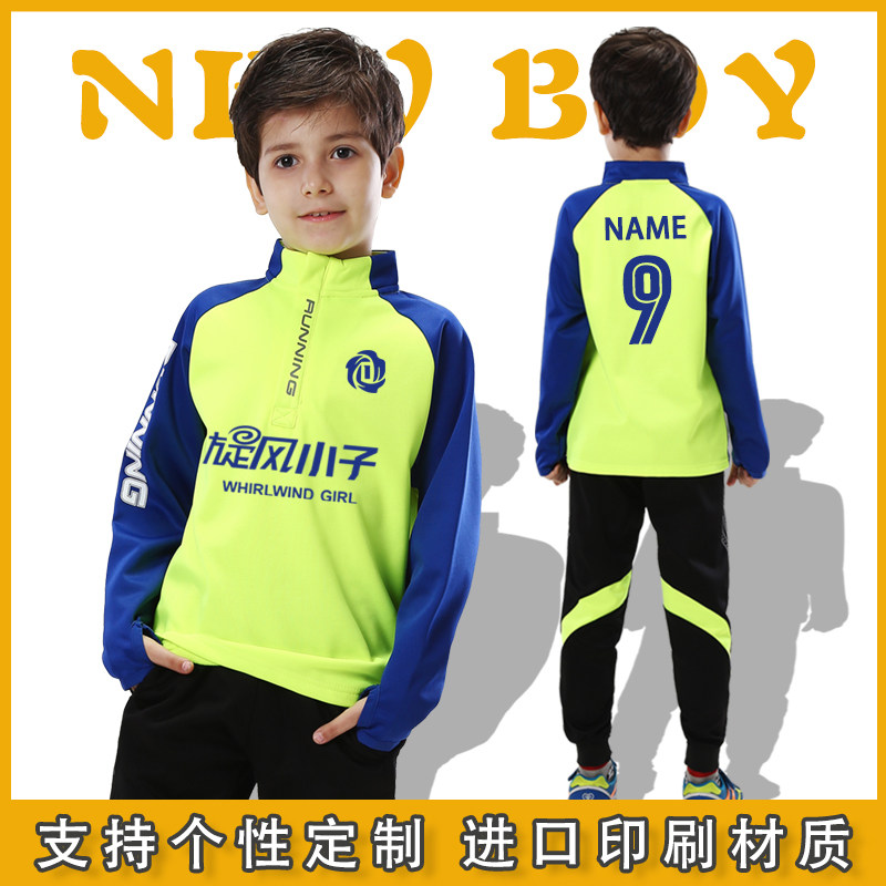 秋冬儿童足球服套装 足球衣女学生运动比赛训练服印字 男童定制短袖