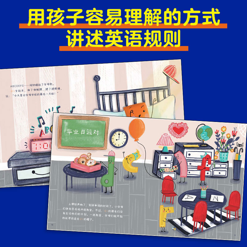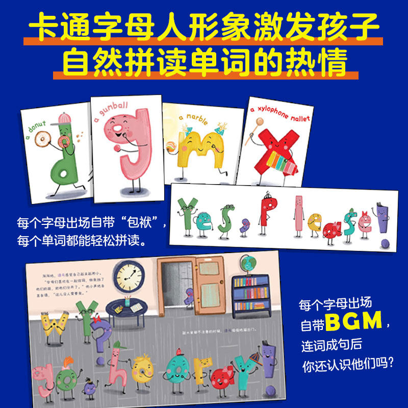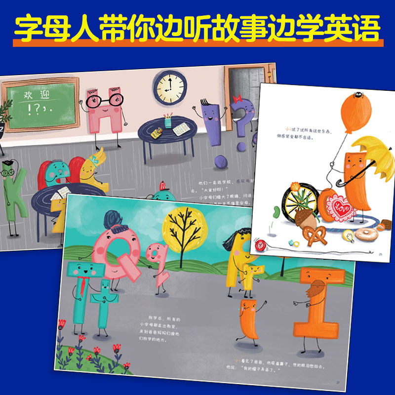 点读版 中英双语英语字母单词自然拼读常用句型早教启蒙读物儿童书籍3 趣味字母学校 硬壳全3册套装 6岁睡前故事图书 绘本精装