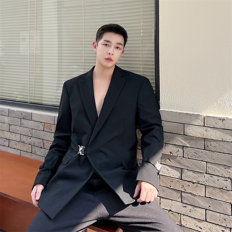 Dashufulcrum韩式 男春秋轻熟痞帅质感DK西服外套 简约垫肩休闲西装