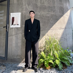 宽松垂感长裤 ArguE小众解构肌理垫肩西装 外套双层领设计西服套装