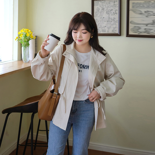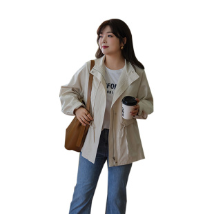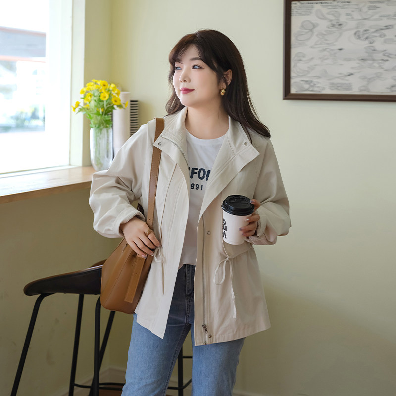 清仓直降 休闲工装 蓝若水大码 胖MM春装 抽绳显瘦立领外套 女装