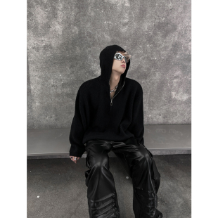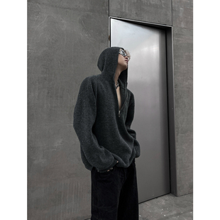 型男女潮 半开连帽大毛衣慵懒宽松大版 THREENINE STUDIO小众设计款