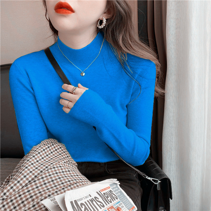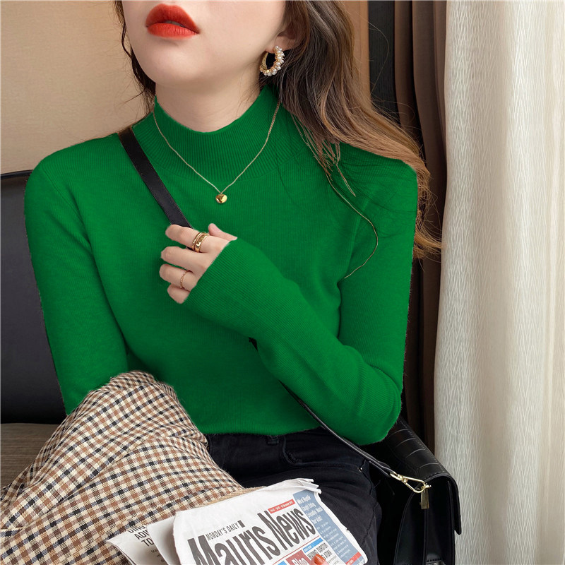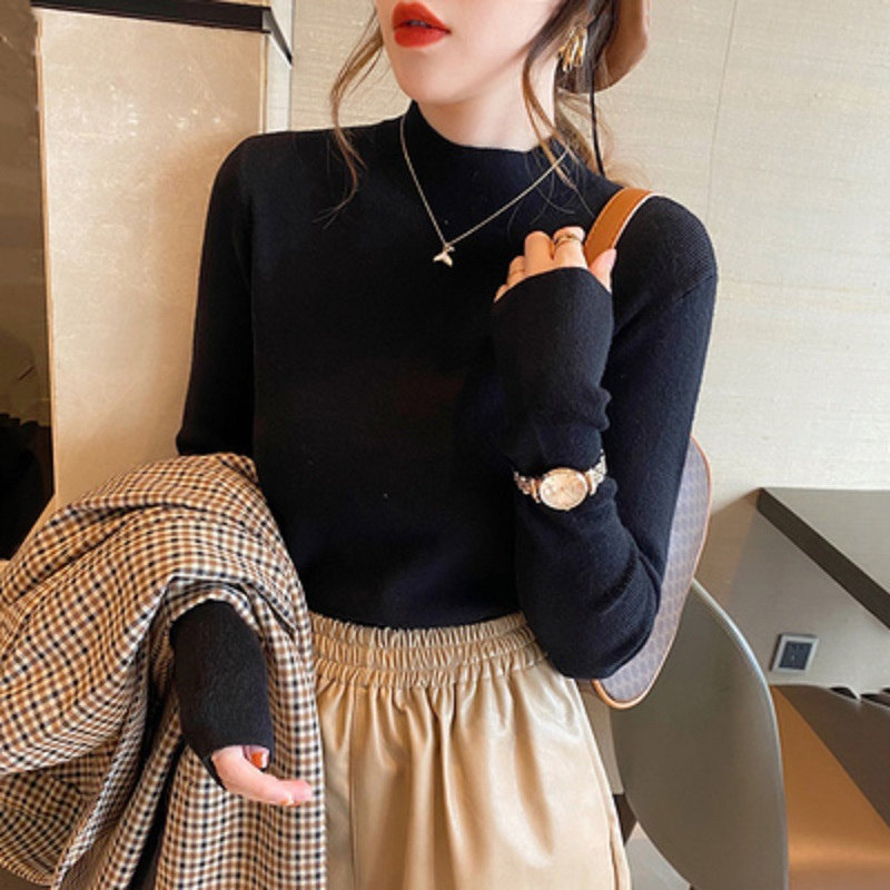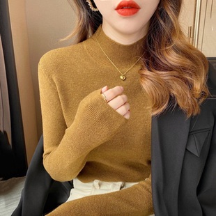 t恤内搭2025春装 女秋冬长袖 毛衣加厚上衣潮 针织半高领打底衫 大码