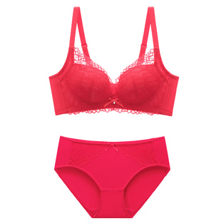 都市丽人红色内衣女士小胸聚拢显大结婚新婚本命年文胸罩内裤 套装