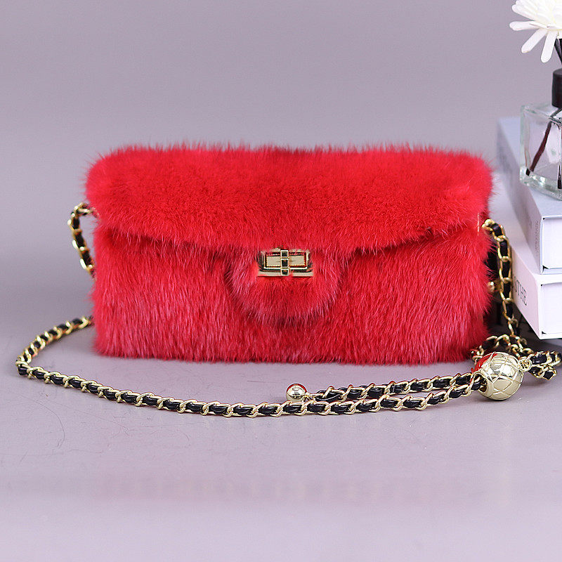 貂毛皮草包包女毛绒单肩包2025秋冬新款 小圆包真皮草百搭毛毛包