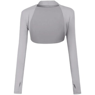 秋 优雅休闲小坎肩瑜伽服长袖 舞蹈运动上衣女开衫 健身披肩外穿短款