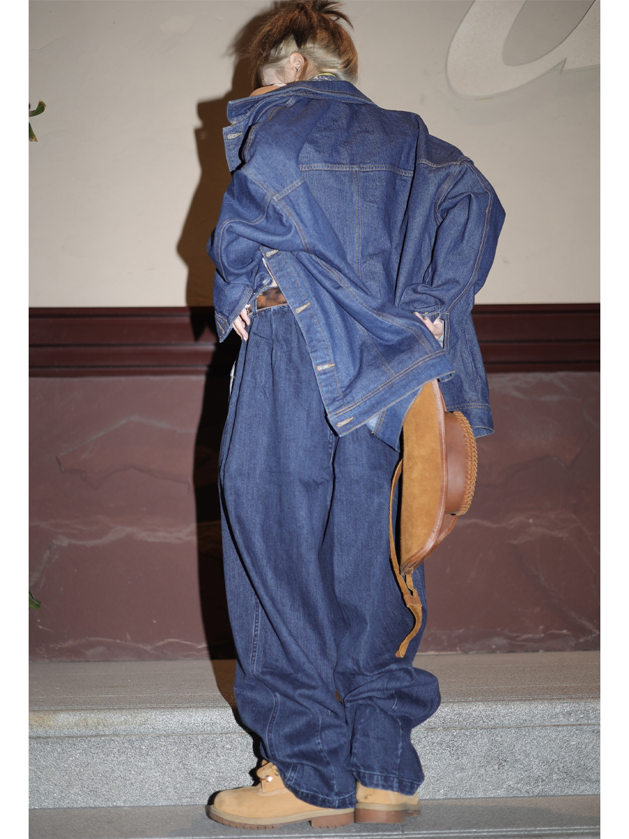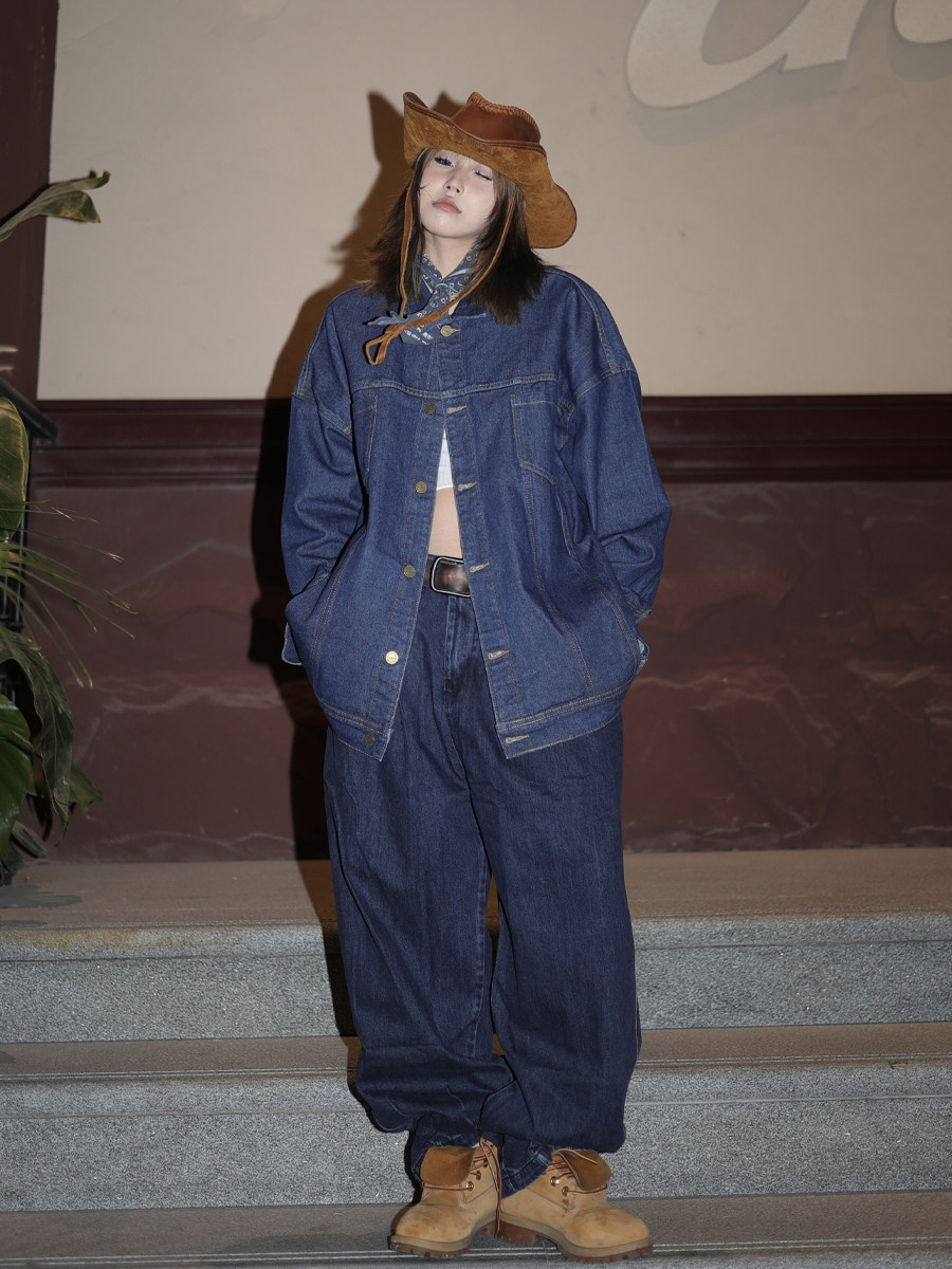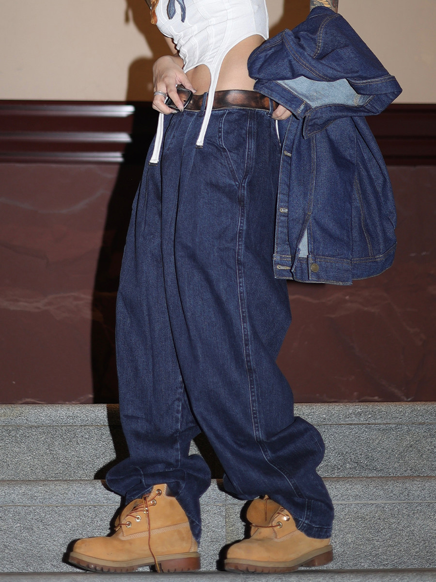 男女同款 Gecko美式 垂感牛仔裤 水洗蓝色宽松阔腿裤 街头复古牛仔裤