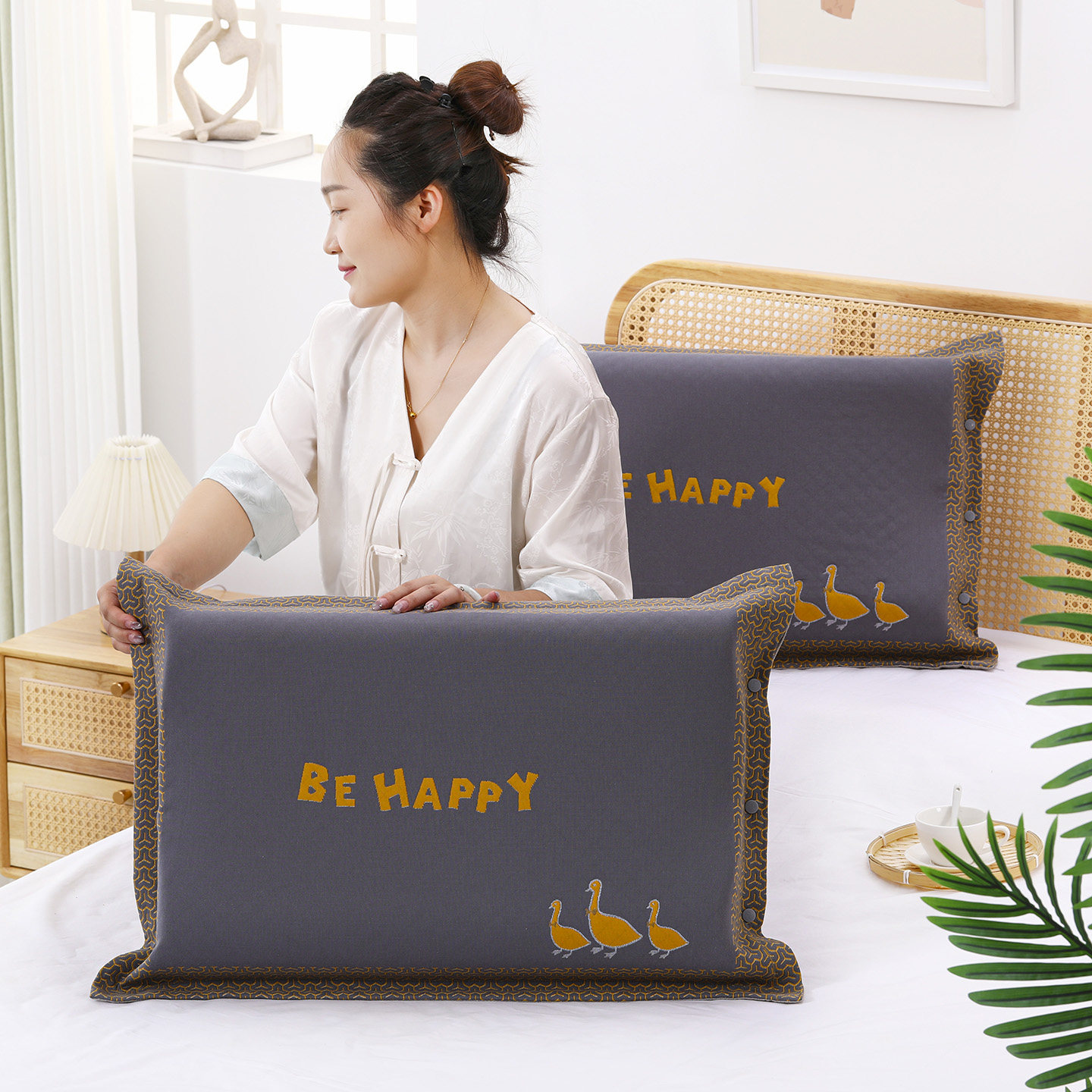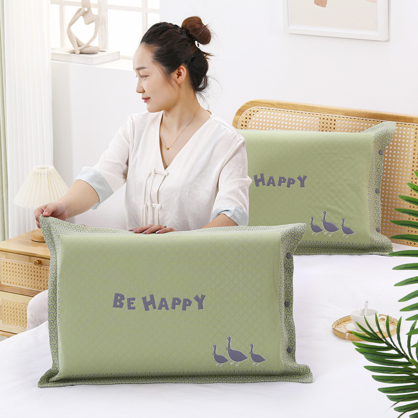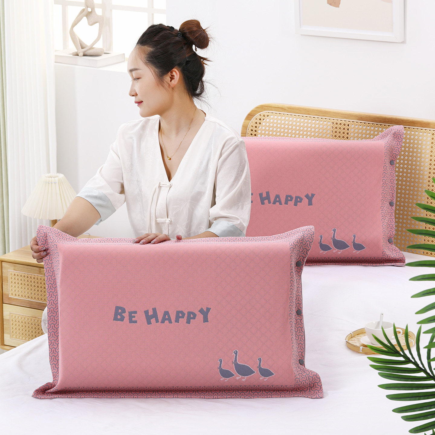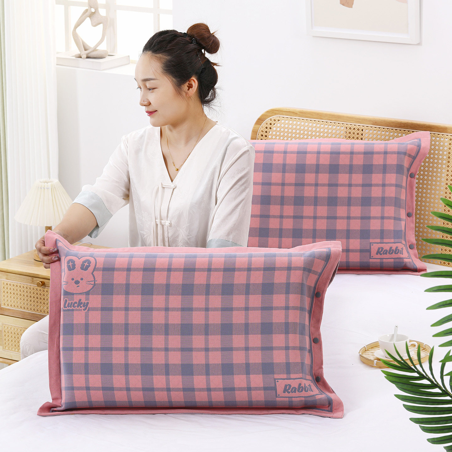 新款 棉纱布按扣枕套一对加大厚枕头套家用成人透气吸汗隔油40