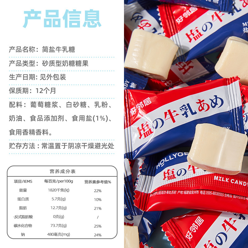 好邻居海盐味牛乳奶糖果咸味软糖办公休闲零食喜糖结婚糖散装 批发