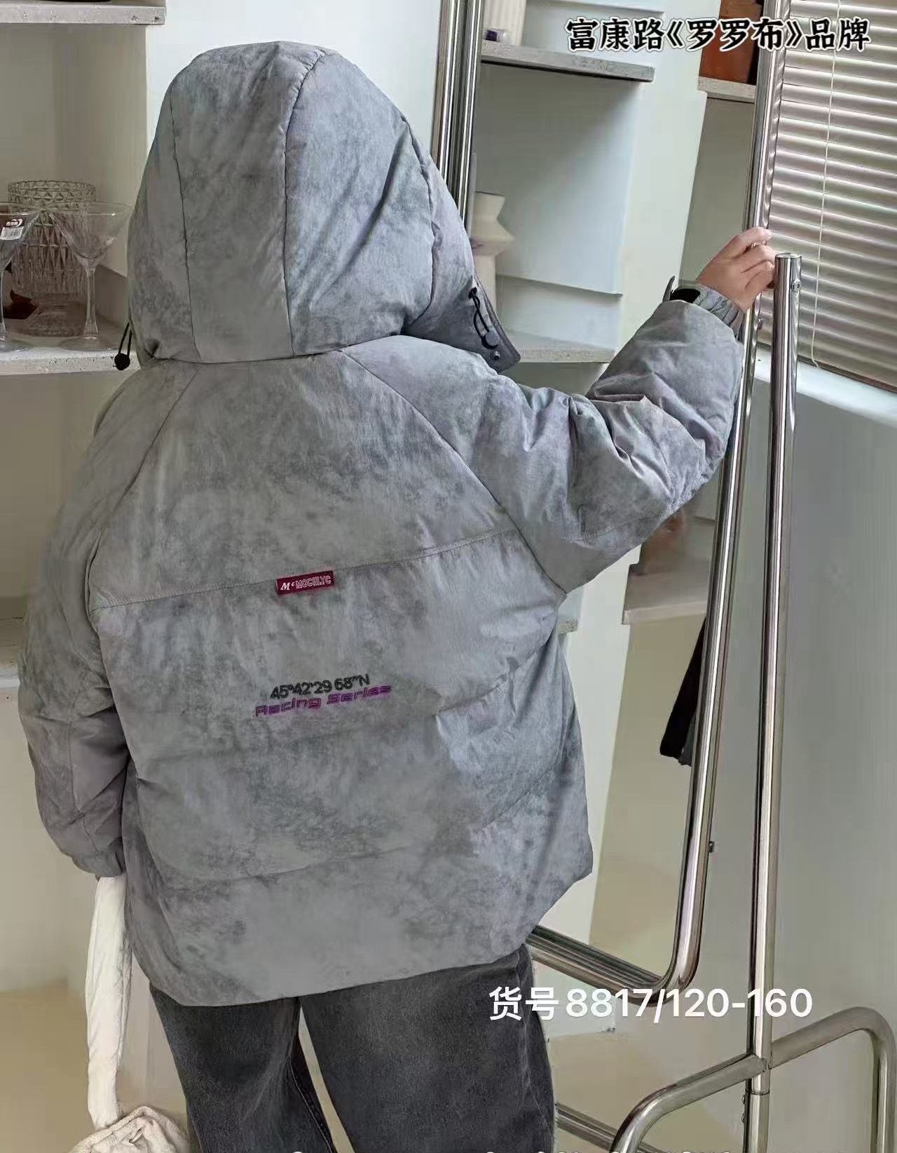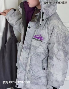 126KID美式 白鸭绒保暖外套 格子拼接轻薄连帽排骨羽绒服男女冬季