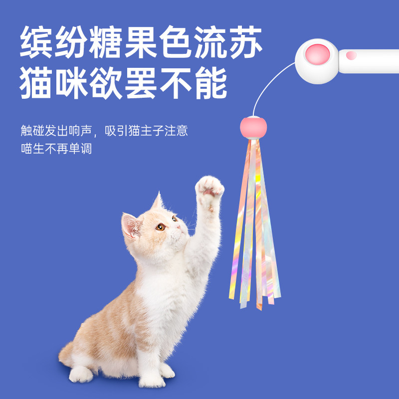 引力弹弹逗猫棒长杆可伸缩耐咬猫咪玩具红外线激光笔羽毛替换头