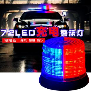 USB充电式 无线遥控爆闪强磁吸顶红蓝警示灯圆形高亮LED开道闪光灯