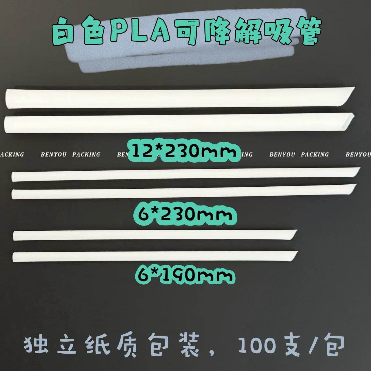 白色PLA可降解吸管6 冷饮粗细吸管 12mm口径加厚尖头单支独立包装