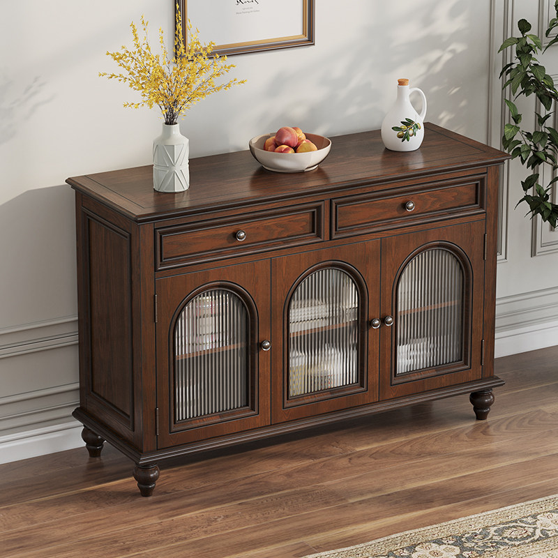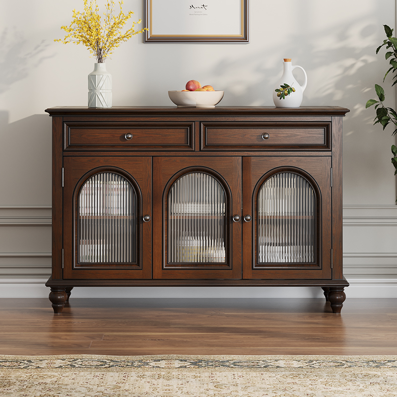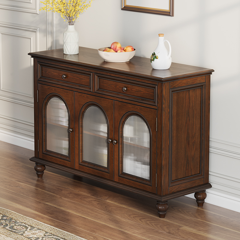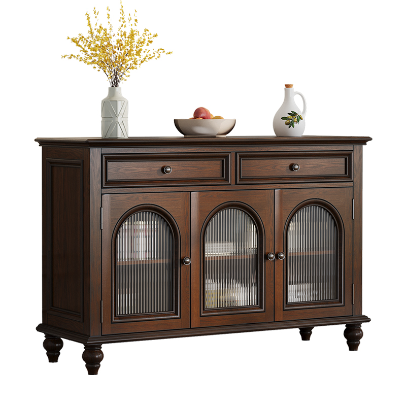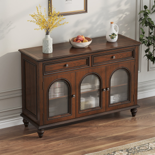 三梦餐边柜中古风双层收纳柜子客厅靠墙一体储物柜实木家用茶水柜