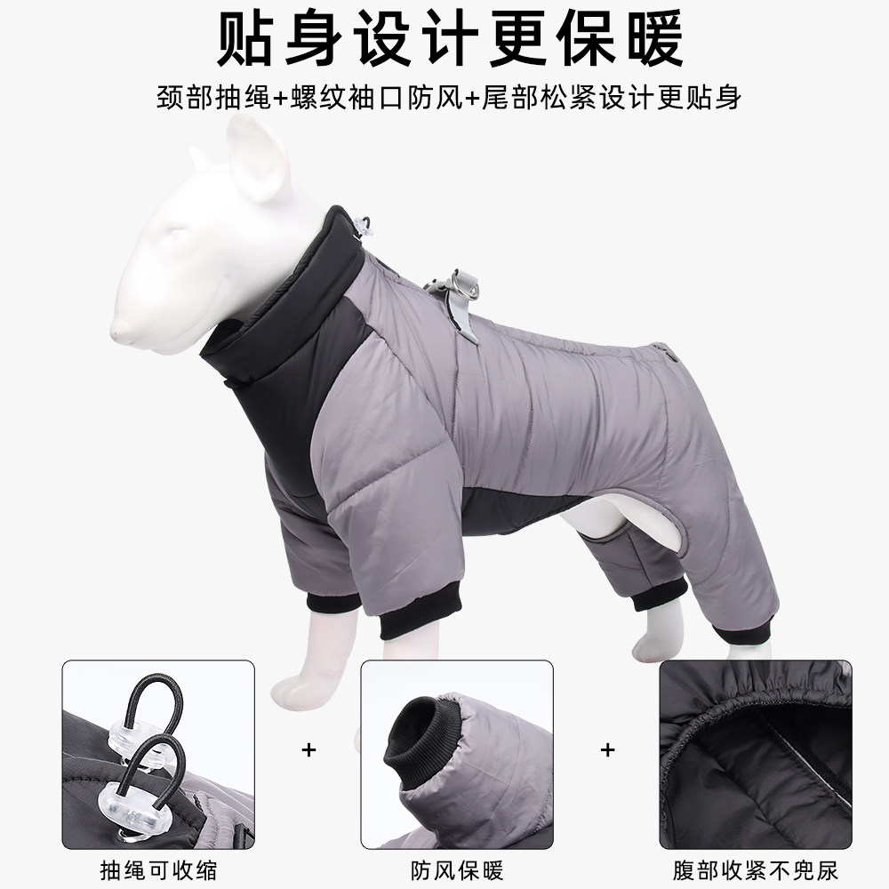 狗狗衣服宠物四脚棉衣加厚保暖小狗防风防水泰迪贵宾可调节狗服饰