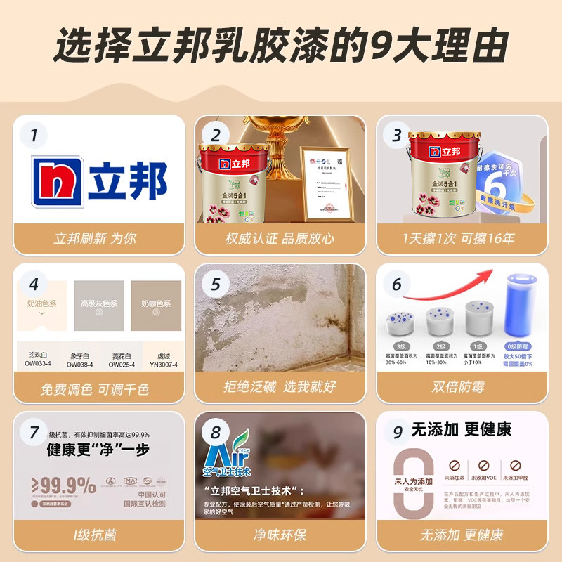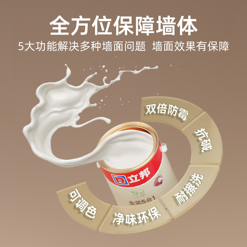 立邦乳胶漆金装 五合一优等品内墙乳胶漆室内家用自刷墙面涂料油漆