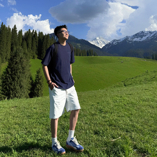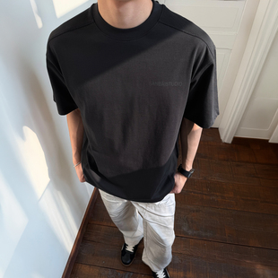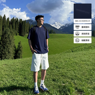 叁佰 纯棉重磅基础休闲宽松短袖 巨显白 夏季 印花t恤男士 SANBAI