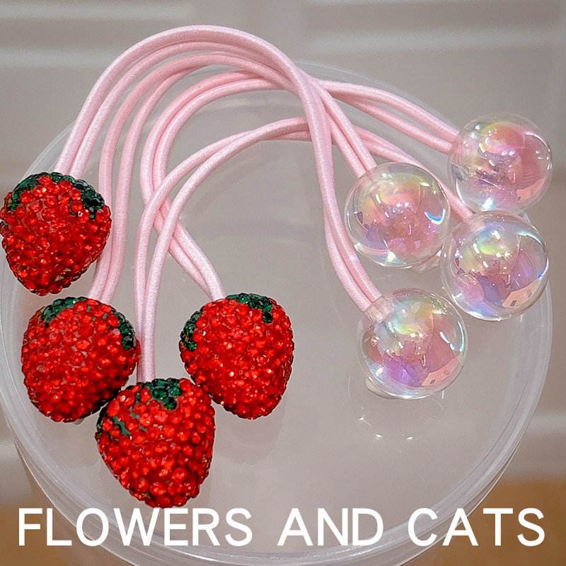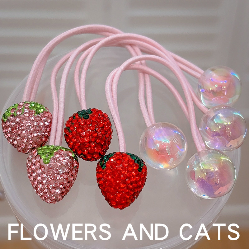 2026粉色草莓镶钻发绳皮筋儿童不伤发头绳发圈女童宝宝扎头发饰宝