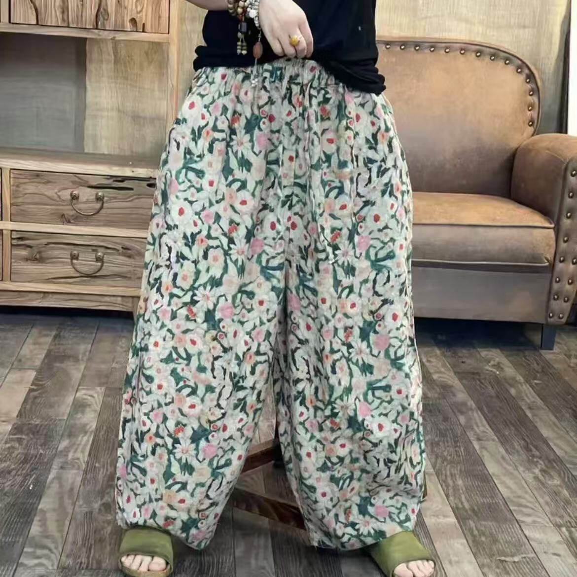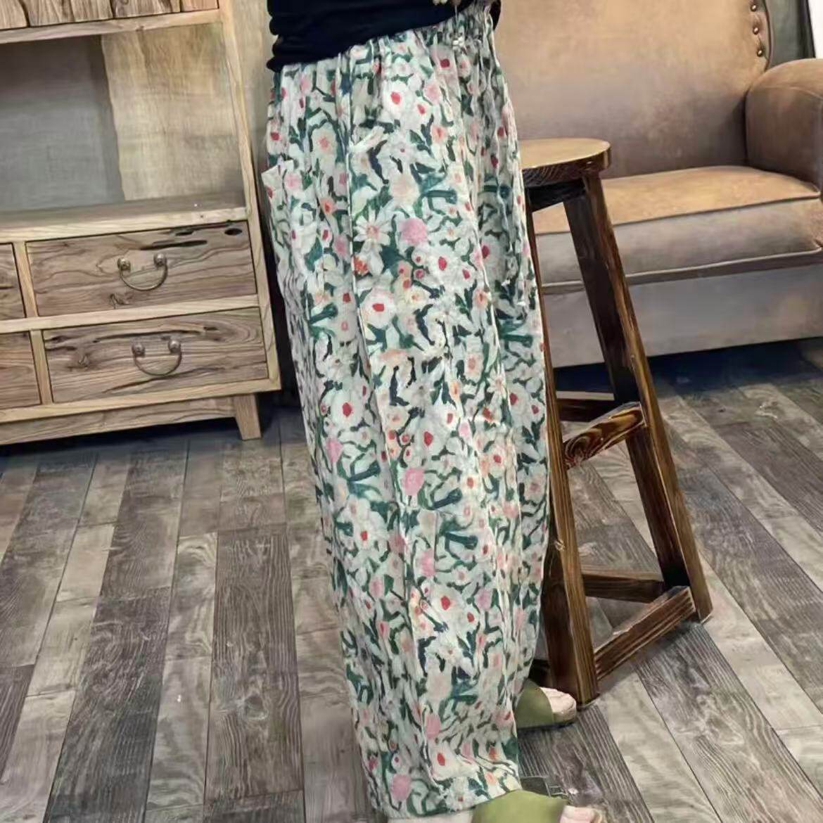 6917 子 夏季 花色文艺休闲百搭女士裤 臀围140长86 新品