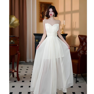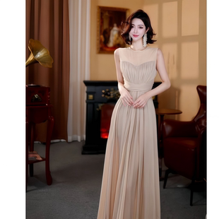 网纱长款 2026年夏季 挂脖款 韩系显瘦感纯欲风纯色无袖 连衣裙女 新款