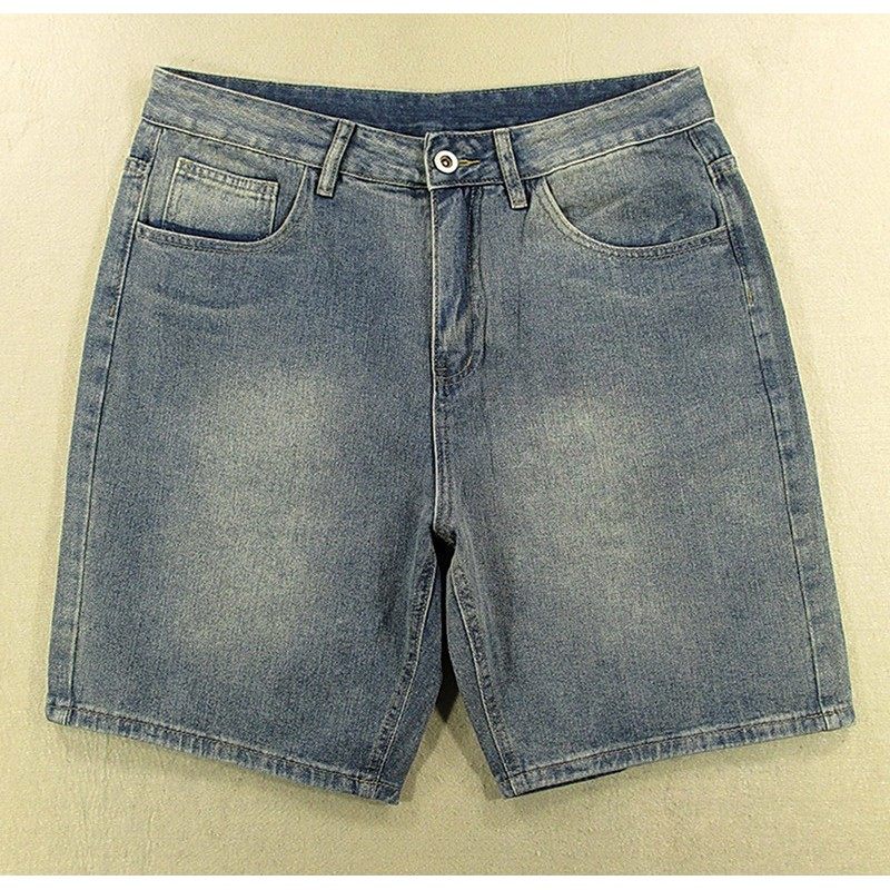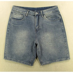 无弹宽松高腰直筒休闲复古 男美式 包邮 F303 牛仔中裤 5586 五分裤