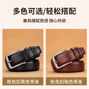 带针扣头层牛皮复古商务休闲牛仔裤 裤 腰带纯牛皮实用 皮带男士 老式