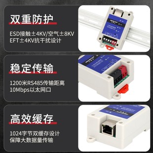 艾莫迅485串口服务器转以太网网口Modbus网关TCP RS485L IP转串口通讯rtu转tcp模块ETH