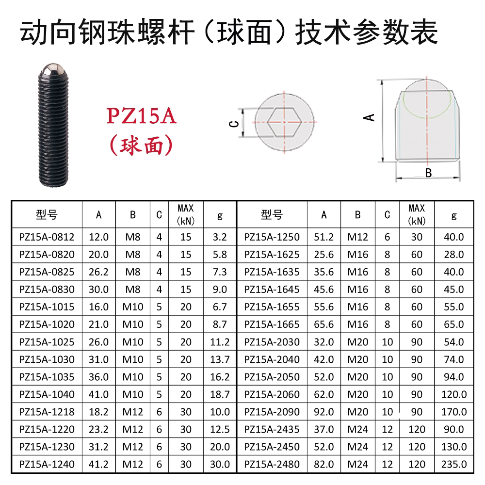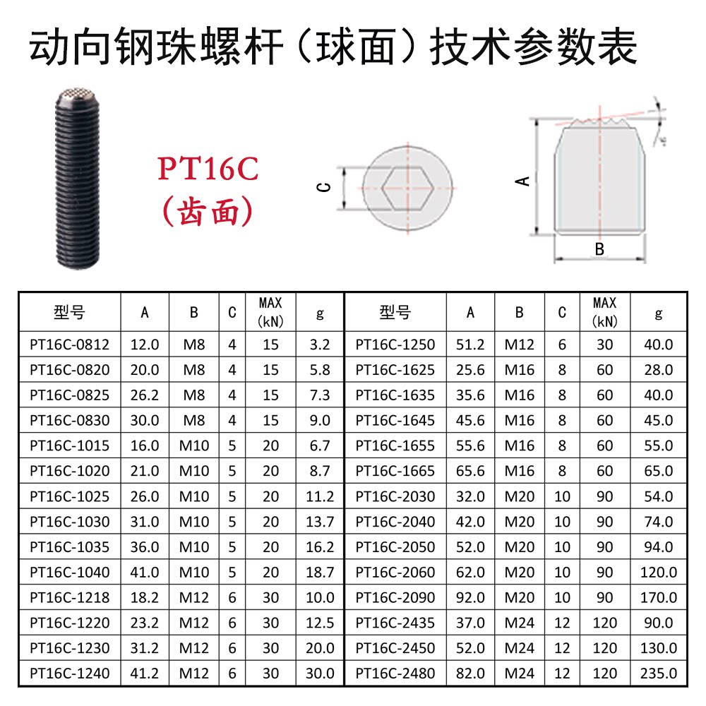 PTB1 动向钢珠螺杆 PT16 球头动向紧定螺丝 无弹簧 彭海