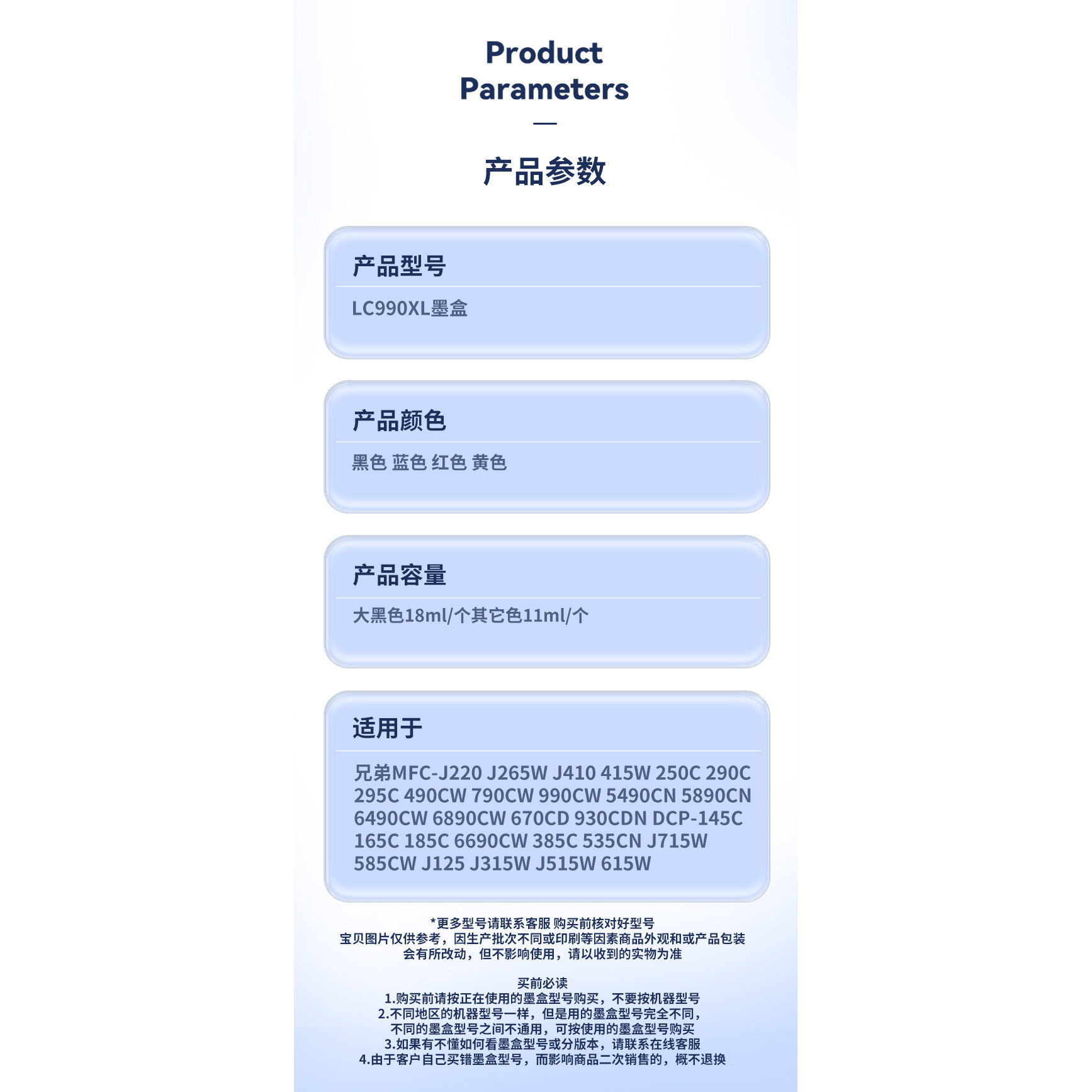 J515W J140W打印机彩色墨盒MFC J220 J125 J615W墨水墨盒 J415W J315 J410 雄彩适用兄弟LC990墨盒DCP J265W