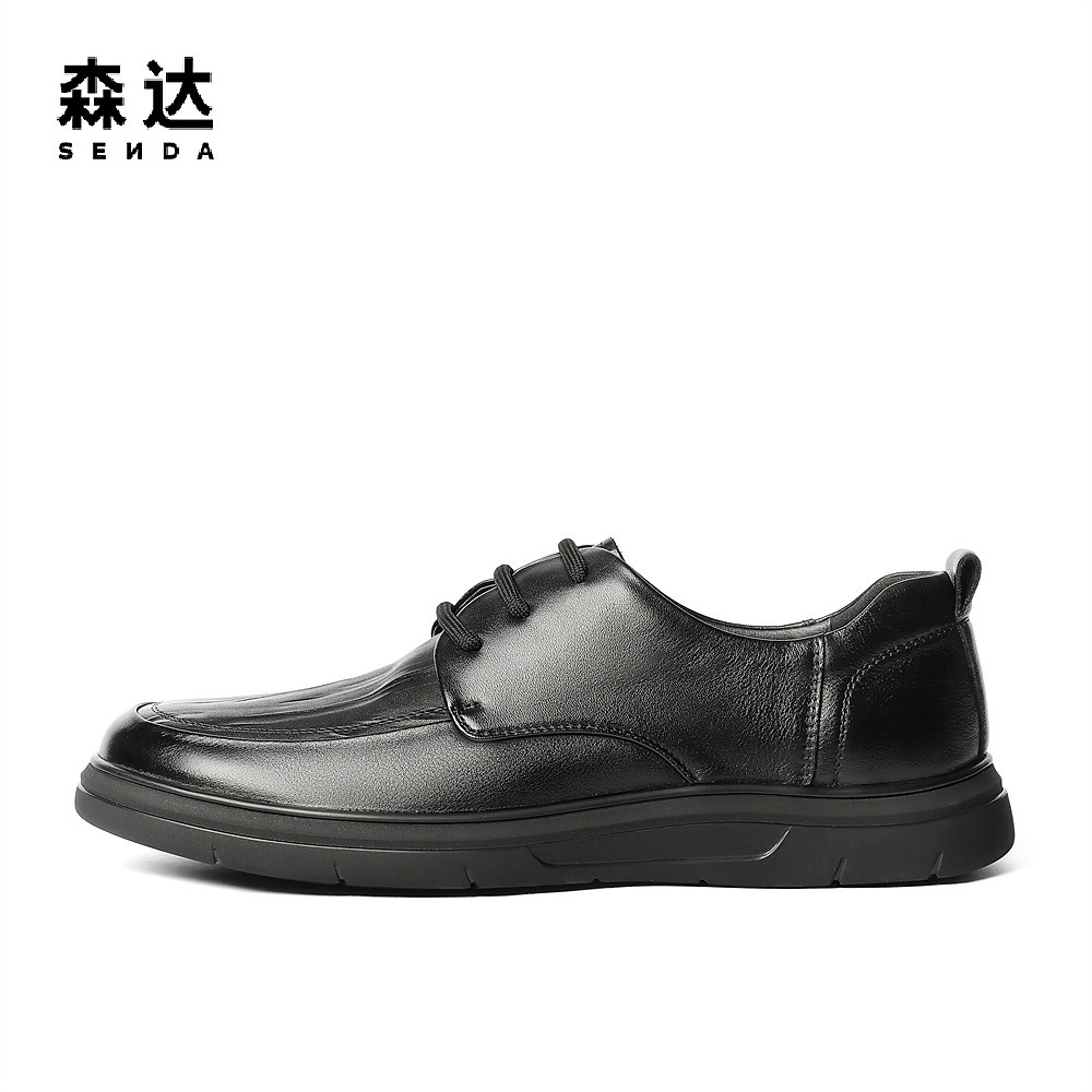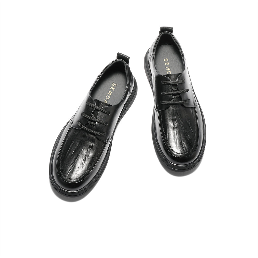 休闲英伦风商务黑色软皮潮鞋 皮鞋 真皮年轻人运动男士 2025新款 男款
