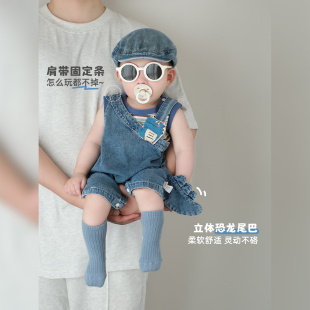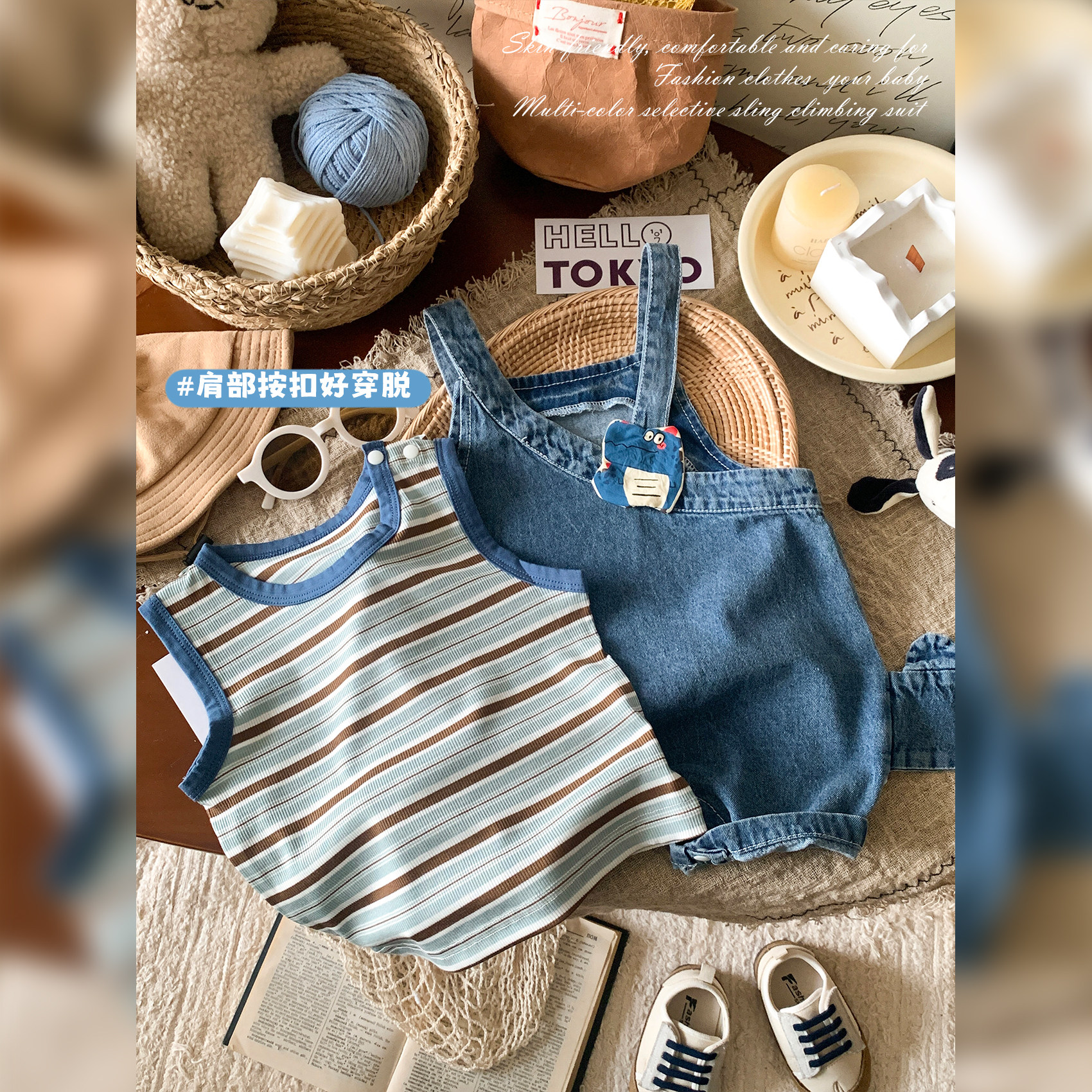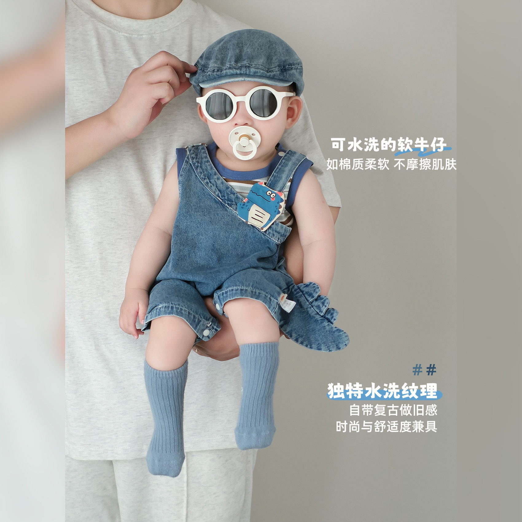 薄款 男宝宝夏套装 夏季 洋气婴幼儿童背心牛仔背带裤 两件套衣服 新款