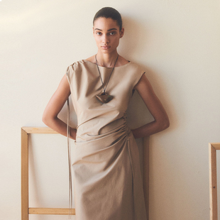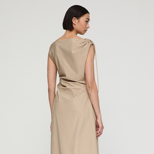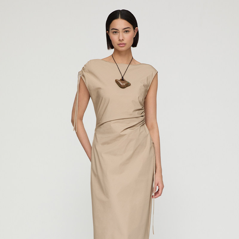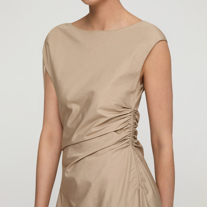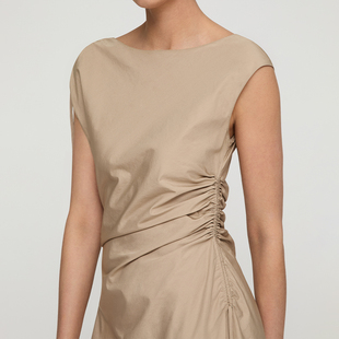 LAFAYETTE148 新款 拉飞逸棉府绸抽带褶饰A字连衣裙 25夏季